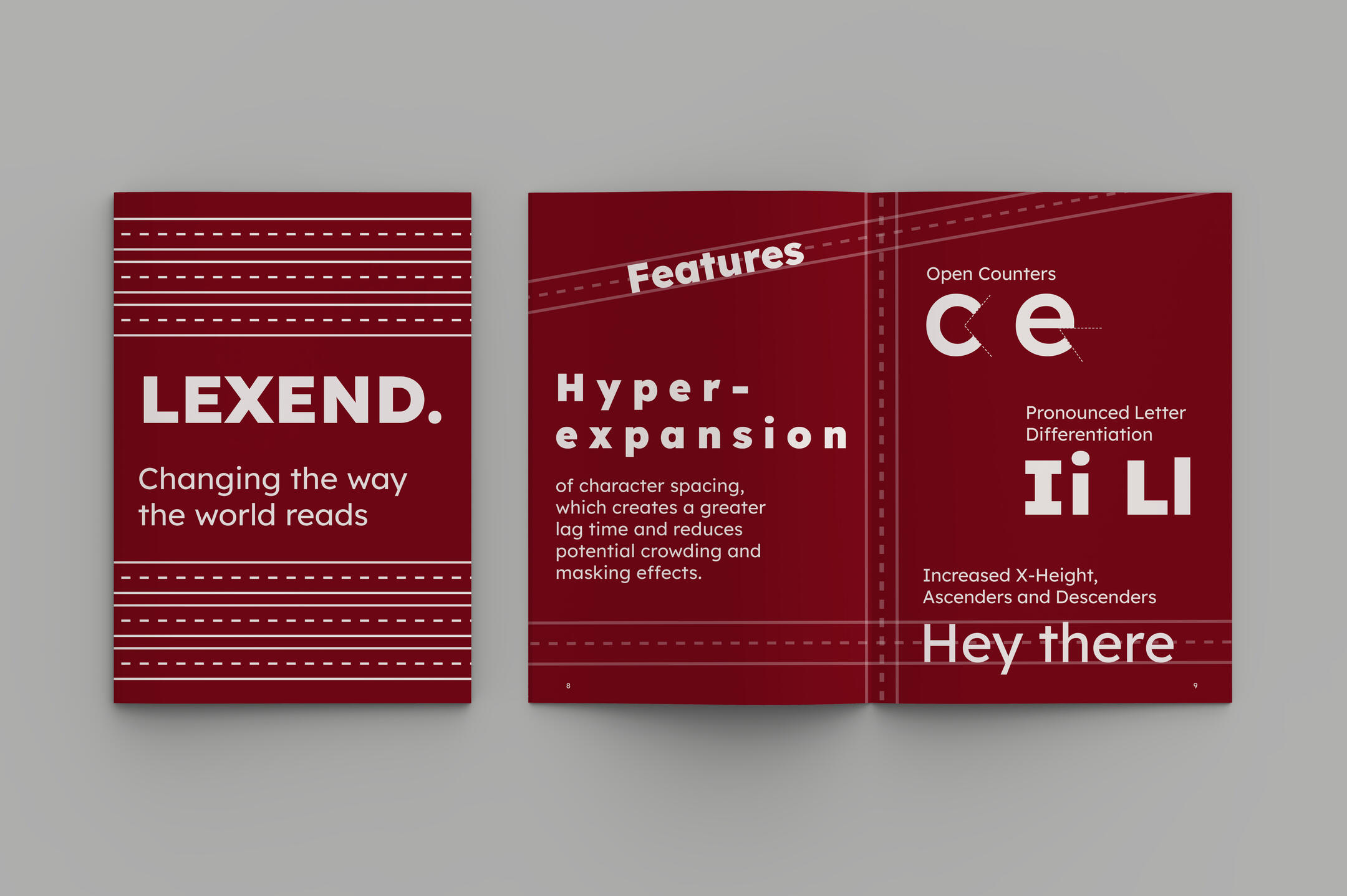 To highlight the typeface’s emphasis on readability and simplicity, I decided on a theme that mimicked one of the first things English-speaking schools teach — how to read and write the alphabet.The booklet incorporates these “guidelines” as the main graphics, in order to showcase the letterforms.